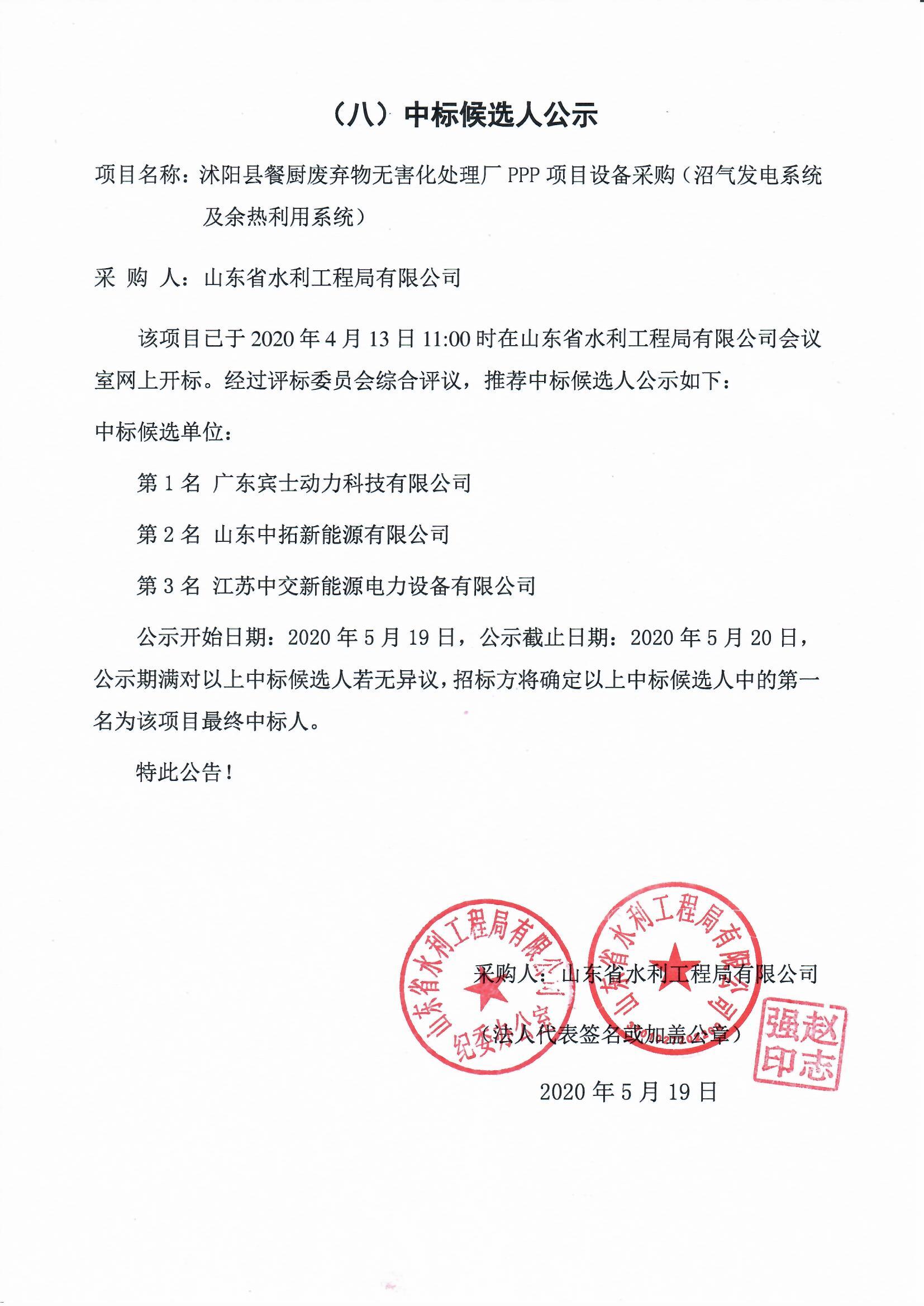 沭陽縣餐廚廢棄物無害化處理廠PPP項目設(shè)備采購中標(biāo)候選人公示