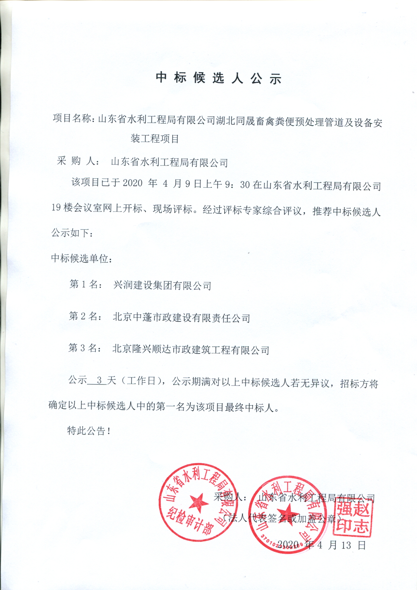湖北同晟畜禽糞便預(yù)處理管道及設(shè)備安裝工程項(xiàng)目中標(biāo)候選人公示